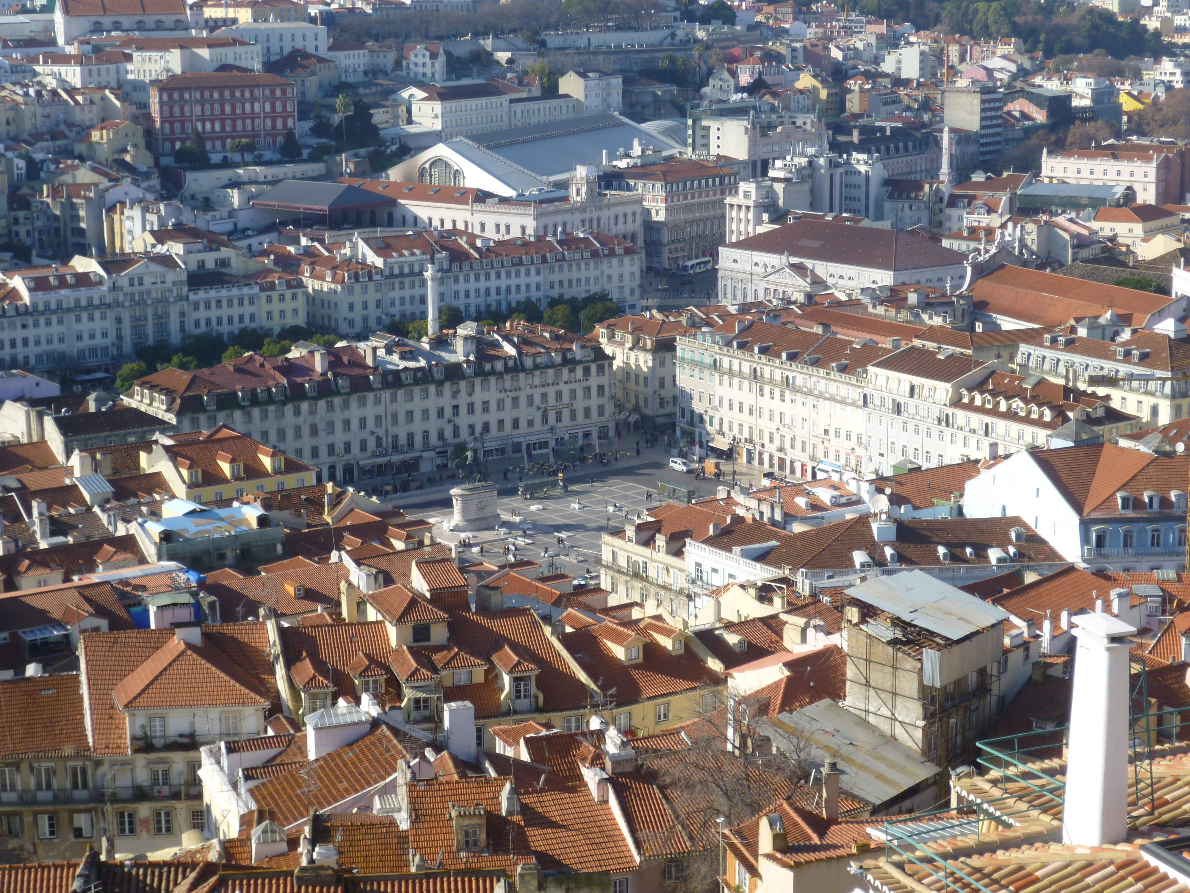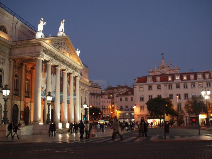 One of the corners of Pedro IV Square (also known as Rossio Square), one of the main public squares in Lisbon. The neoclassical building on the left is the Maria II theatre.