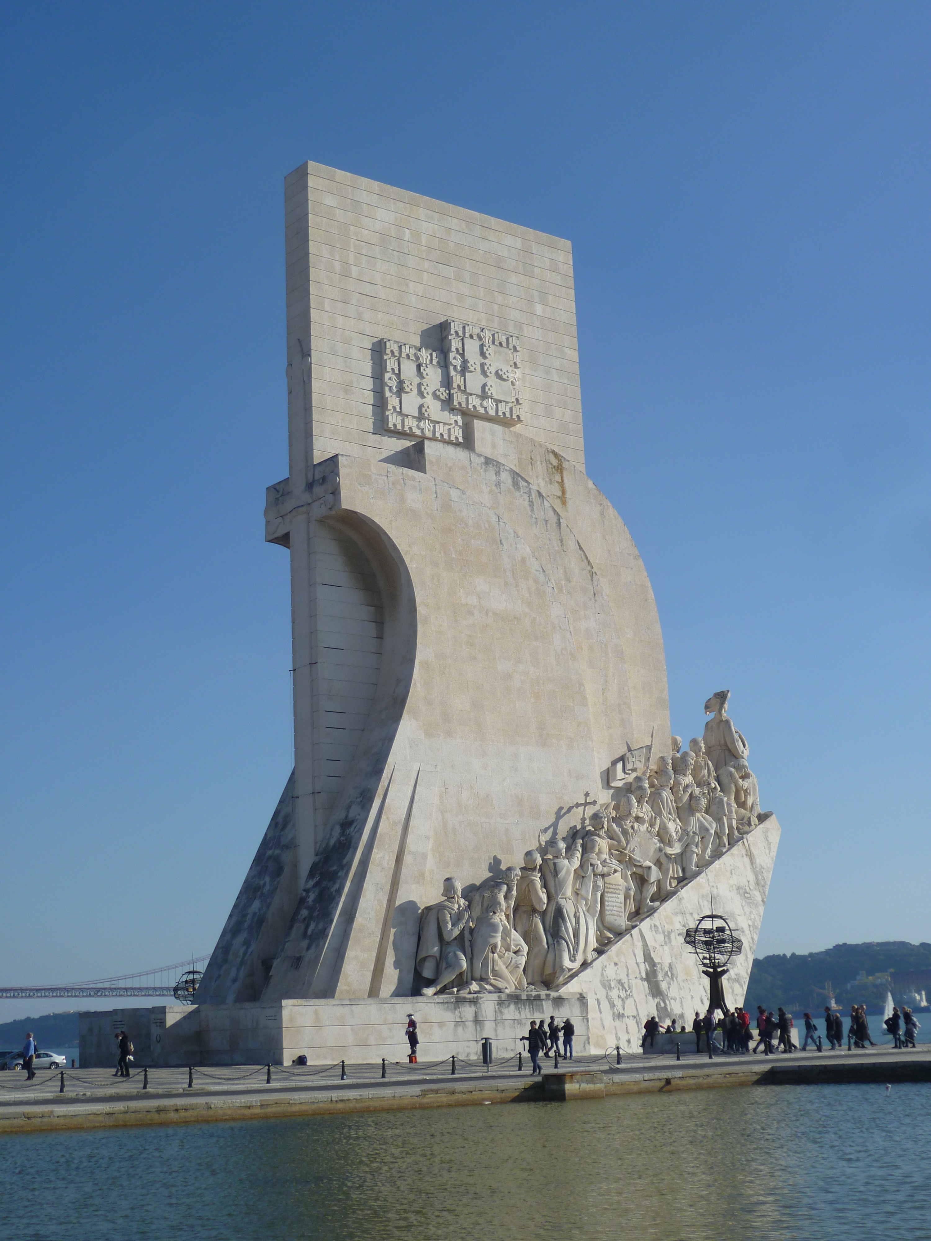After I passed a couple of hours in my hotel room writing a blog post about the previous night’s singing experience, it was time to embark on some exploration. Appropriately, my first stop was the Padrão dos Descobrimentos (Monument of the Discoveries). I’m hugely interested in the Age of Exploration, an era in which the Portugese played a pre-eminent role; so I was eager to check out this concrete sculpture, which includes depictions of the major seafarers of that time as well as their financiers. It looked pretty nice on the outside. Sadly, the exterior was all that I was able to see of the Padrão dos Descobrimentos. Although the posted hours on the front doors indicated that the monument was supposed to be open during the day and time of my visit, those doors were locked and there were no personnel on the premises. I was thus deprived of the opportunity to ascend to the terrace for a panoramic view of the surrounding area. It also would have been nice to see the multimedia exhibition on Lisbon’s history that is supposedly found inside the monument. The monument looked nice on the outside, though.