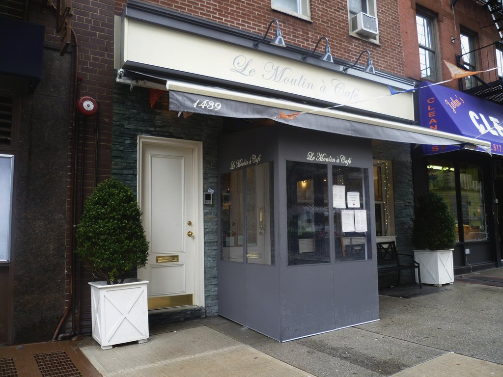 didn’t help, as it alienated many of the regulars who’d been loyal to her show). Finally, in September 2007, Cabin Fever closed its doors forever. The space remained vacant for several years; this seemingly permanent emptiness seemed appropriate to me, as nothing could ever really replace the Lodge. Finally, in late 2011, a new occupant moved into the space: a French cafe (seen in the photo on the right). An ignominious end, indeed, for an establishment that had once exerted so strong an influence over its neighborhood and beyond. Croissants and café au lait are no substitute for what the Lodge once offered.