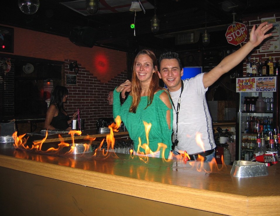 As I’d been promised, I had no trouble locating a karaoke bar (However, I neglected to record for posterity the name of that watering hole). Curiously, the only photo that I took (or had taken) in this venue shows the bartenders lighting the bar on fire (see photo at left). And, not anticipating that one day I would start blogging about my World Karaoke Tour, I regrettably failed to document my complete set list from that night. An email that I sent to a friend a week or so later does reflect that I sang Barry Manilow’s “Copacabana,” which elicited a strong crowd response; and I also specifically remember singing “I Want It That Way” by the Backstreet Boys. And just as anticipated, I met many British tourists in the bar, and had a great time. Then I got back on the National Highway for a white-knuckle drive back to my hotel in Heraklion.
