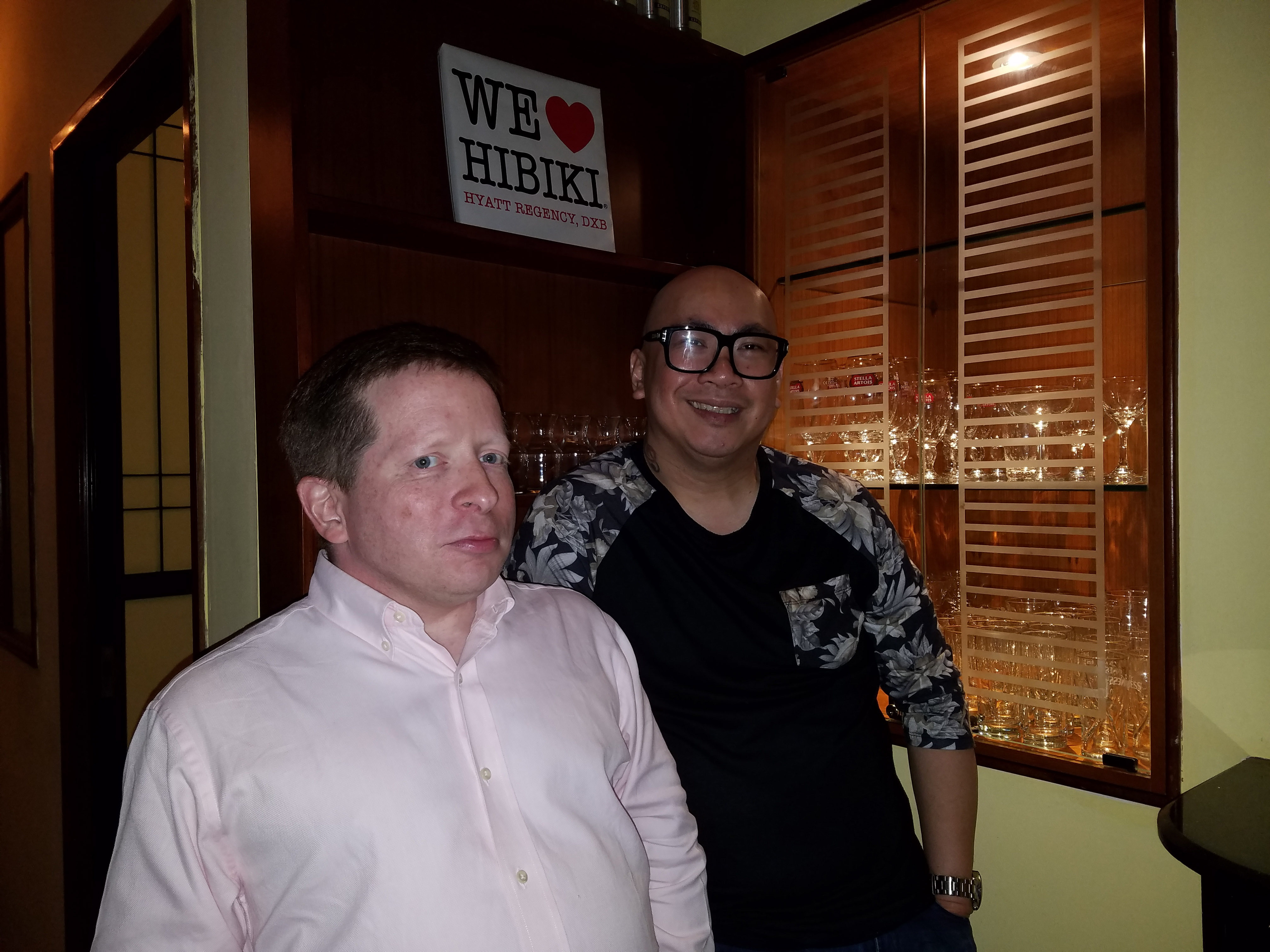 The karaoke at Hibiki (or hibiki, if you prefer) is run by a Filipino expat named Pocholo. That didn’t come as much of a surprise to me; I’ve written before about how massively popular karaoke is in the Philippines, as evidenced by the facts that (1) the driver of the karaoke-equipped Uber vehicle that I’ve ridden in the Washington, DC area hails from the Philippines, and (2) the place where I sang in Doha, Qatar, just a couple of days before my appearance in Dubai, was a Filipino restaurant.