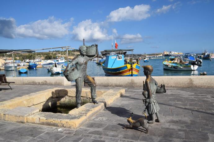 Marsaxlokk is a tiny, old-fashioned fishing village on the main island of Malta, and is known for the colourful boats that put out from its harbour. Like so much of Malta, Marsaxlokk has ancient antecedents; its port was used by the Phoenicians! That would be the same Phoenicians who invented the first alphabet well over 3,000 years ago. (Earlier writing systems such as hieroglyphics aren’t considered alphabets; but I digress.)
