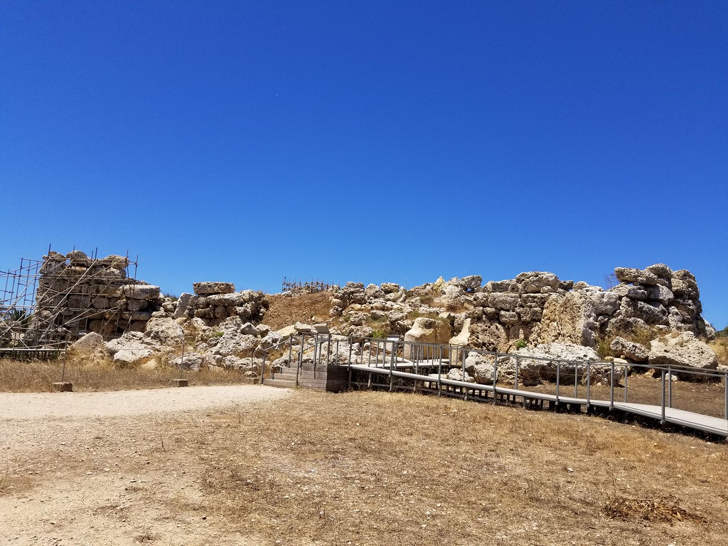 The highlight of my day-trip to Gozo was my exploration of the ruins of the Ġgantija temple complex – a megalithic temple complex that was built circa 3,600 B.C., making it over a millennium older than the Egyptian pyramids! (Architecturally speaking, to call the edifices at the site “megalithic” is to signify that they were constructed of large stones without the use of mortar.) The site was dubbed Ġgantija because at one time before the advent of modern archaeology, it was believed to have been constructed by a race of giants.