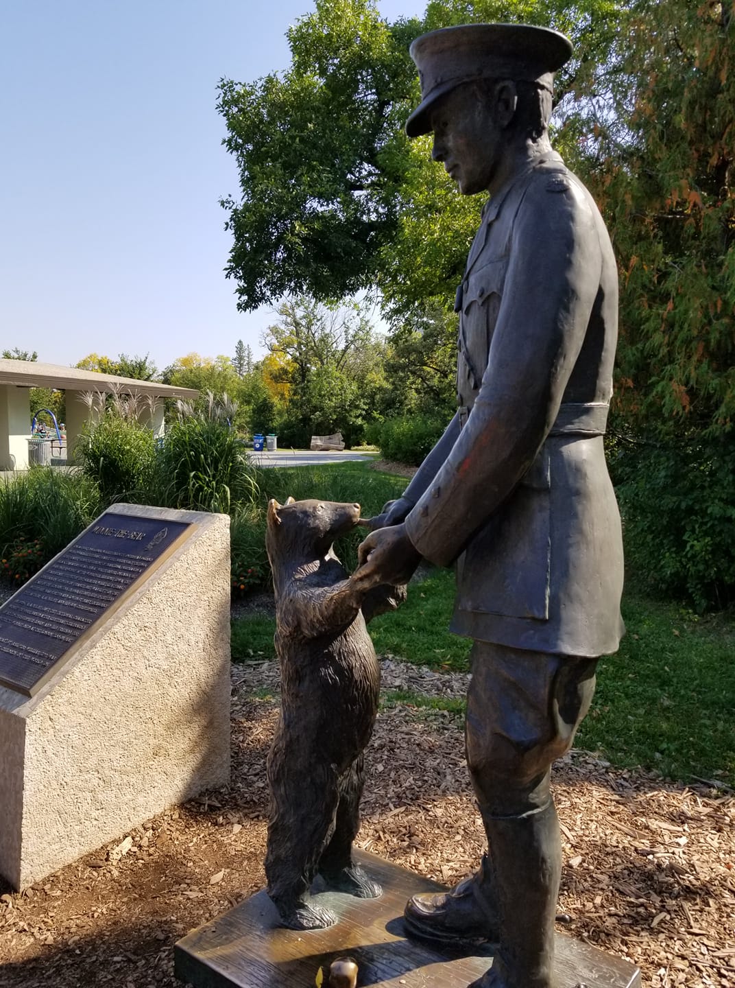 A statue of Winnie-the-Bear in Winnipeg’s Assiniboine Park. She was an actual bear cub adopted by a Canadian soldier in Ontario, and inspired A.A. Milne to create the Winnie the Pooh character.