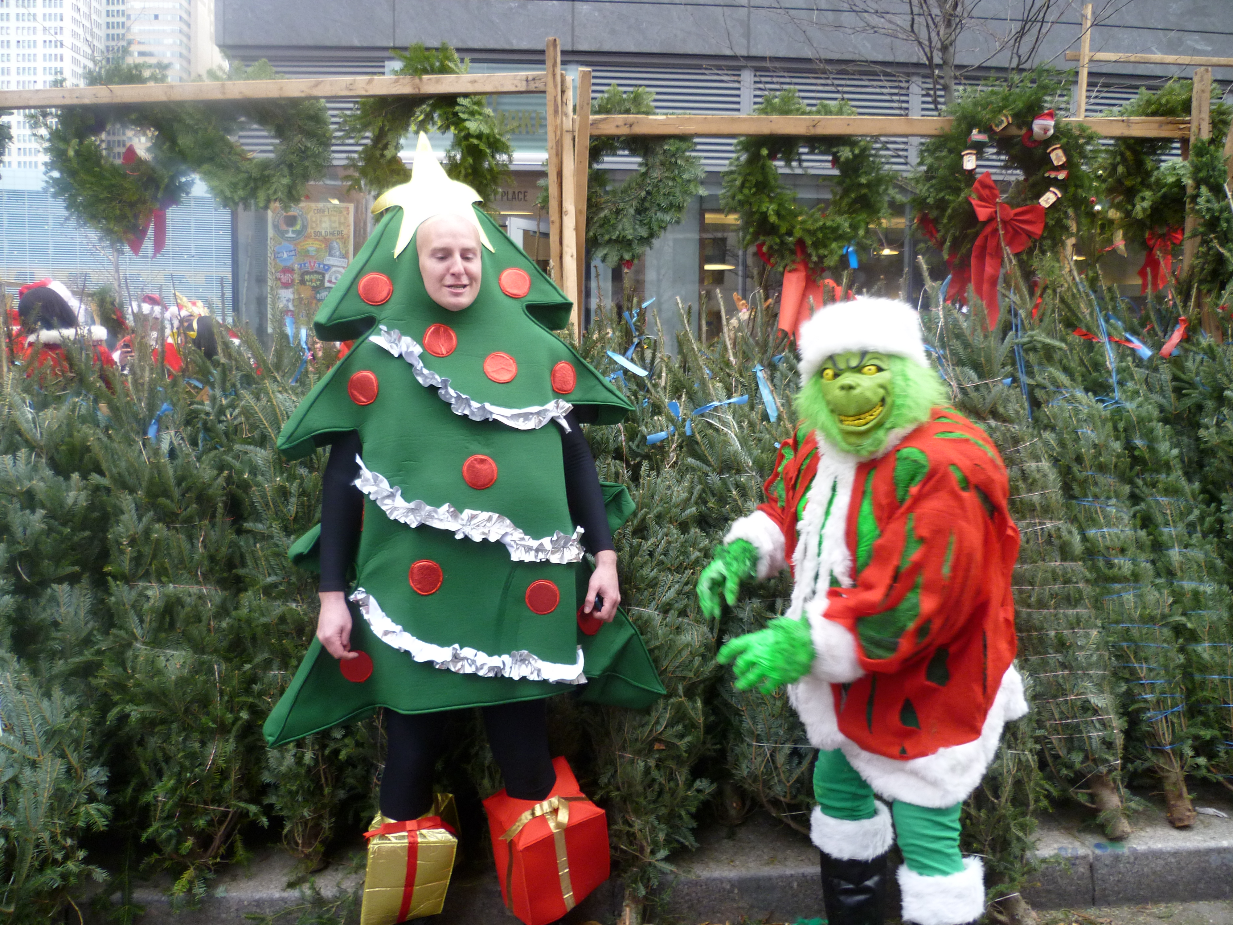 Yesterday was the annual event known as Santacon in New York City. Thousands and thousands of people clad in Santa suits, as well as other seasonally appropriate costumes (Buddy the Elf is a perennial favorite, and for those of the Jewish persuasion, some human dreidels can always be counted on to show up), cavort throughout the city. And sometimes the outfits bear no discernible relation to this time of year. For example, one of my favorite participants yesterday was the person dressed as a giant Chiquita banana. So the sea of red was interrupted by a giant yellow fruit.